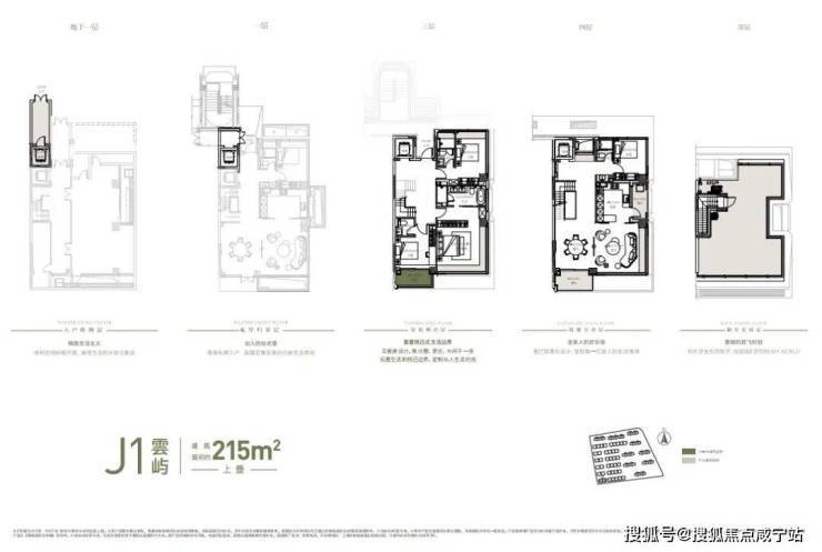 建面约215㎡上叠:屋面+庭院+地下室+露台+阳台的整体附赠空间约110㎡;