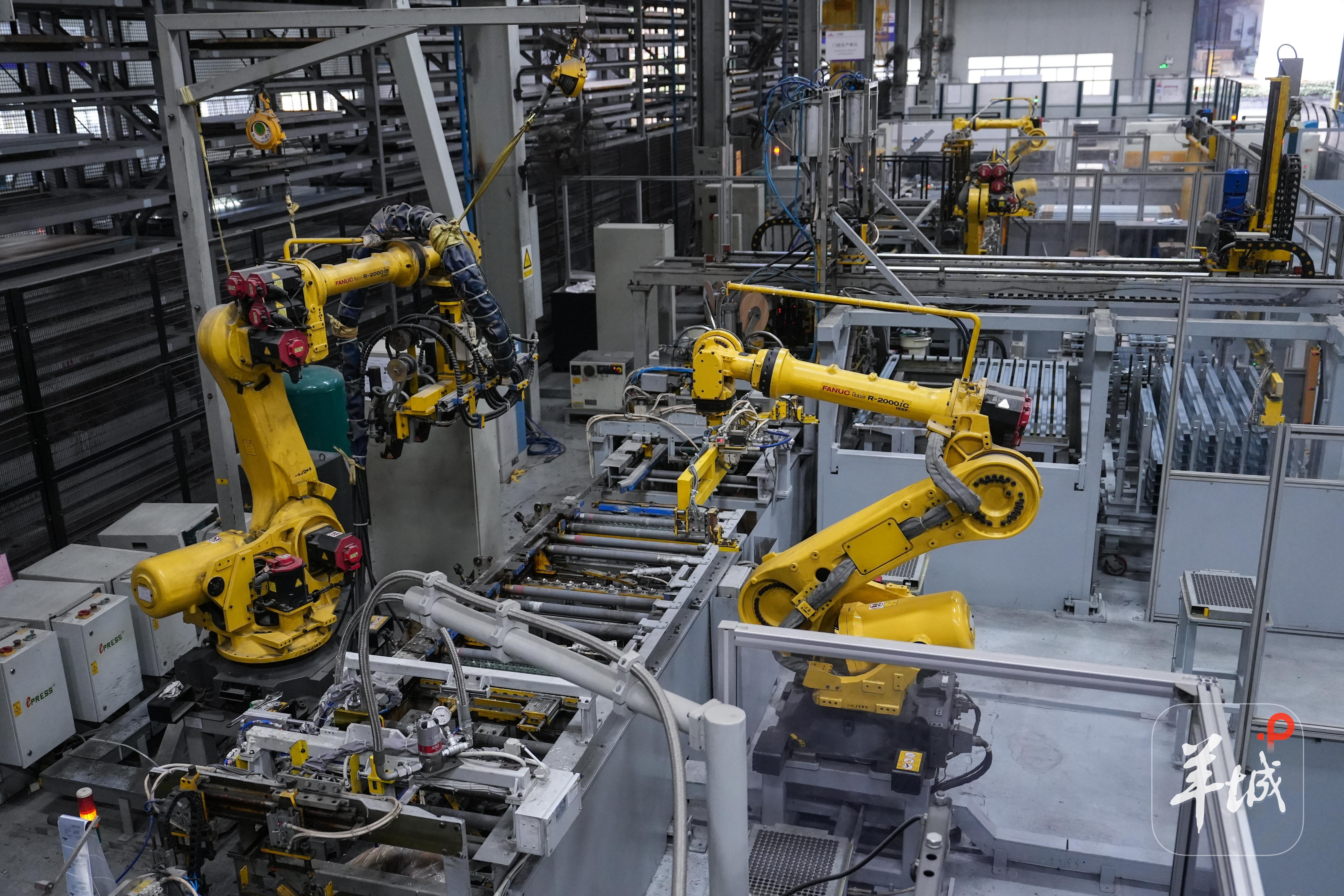 机器“焊工”,只是广日电梯众多生产线上的一员。在广日电梯的产线上,更多机器“工人们”在辛勤劳作。
